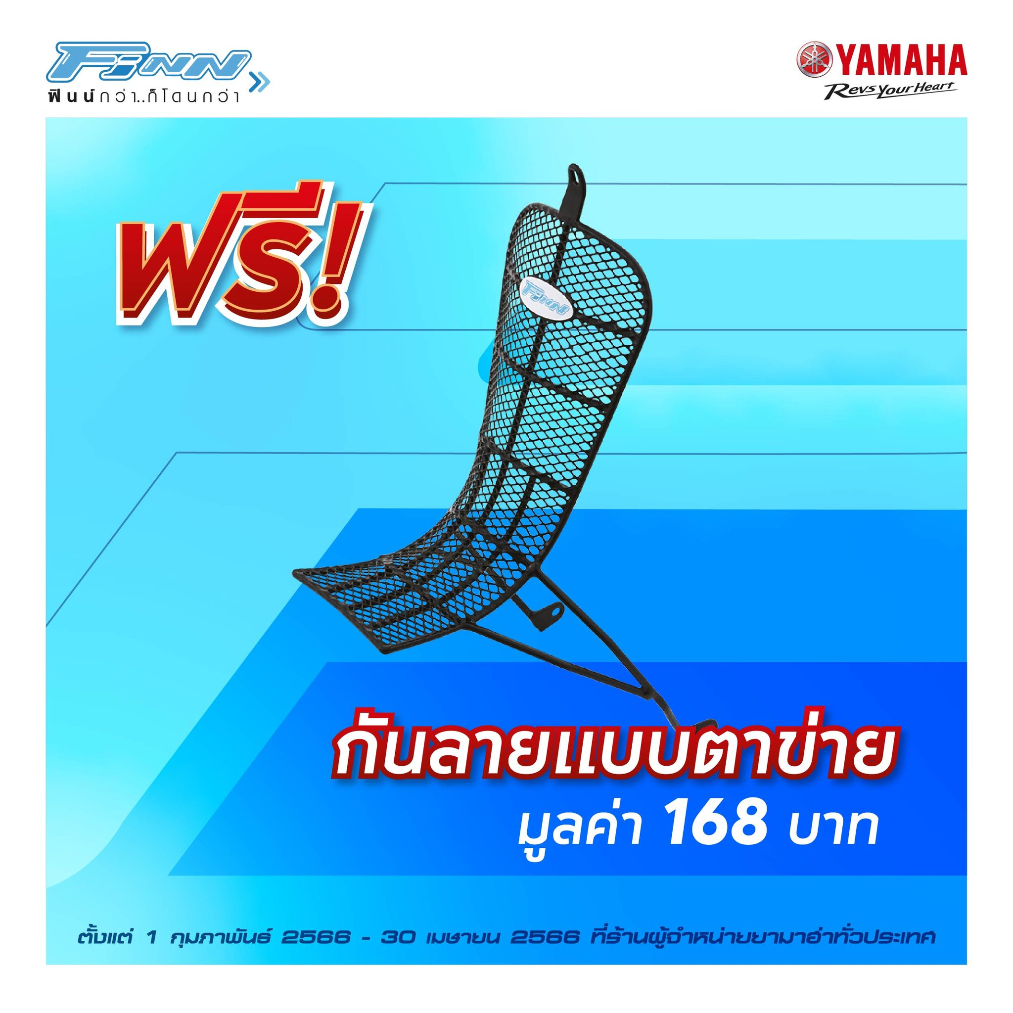 *รับฟรีของแถมเฉพาะผู้ที่ซื้อรถจักรยานยนต์รุ่นฟินน์ ที่ร้านผู้จำหน่ายยามาฮ่าที่ได้รับการแต่งตั้งอย่างเป็นทางการ ตั้งแต่วันที่ 1 กุมภาพันธ์ 2566 – 30 เมษายน 2566